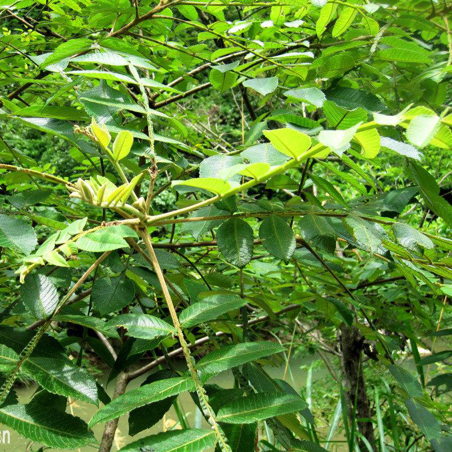 落葉灌木至小喬木;小枝被柔毛,有皮孔。喜光,喜溫暖濕潤氣候。鹽膚木對(duì)土壤适應性強,不耐水濕,能(néng)耐寒和幹旱。深根性,萌蘖性強,生長(cháng)快,壽命短。繁殖用播種(zhǒng)、分蘖、扡插效果好(hǎo)。移植在秋季落葉後(hòu)至春季芽萌動前進(jìn)行。不耐水濕,日常管理注意排水。鹽膚木園林用途:可爲觀賞樹種(zhǒng),也可點綴綠地或與其它樹種(zhǒng)組成(chéng)風景林。高可達9米。樹皮灰褐色,有赤褐色斑點;小枝上有三角形葉痕。葉互生 ,奇數羽狀複葉,長(cháng)12~20厘米,總葉柄基部膨大,葉軸生有灰褐色細毛,兩(liǎng)側有3~6對(duì)箭葉,初有短毛,後(hòu)漸脫落,小葉7~13枚,無柄,頂部小葉廣卵形或卵狀廣橢圓形,基部圓形而漸尖,先端急尖,長(cháng)5.5~9.5厘米,寬3.5~5厘米,側方小葉卵狀長(cháng)橢圓形以至卵形,稍有偏斜,長(cháng)約13厘米,寬約6.5厘米,除基部外,邊緣有波狀鈍齒,表面(miàn)有疏毛,背面(miàn)密生絨毛,羽狀脈10~17對(duì),幼芽或葉柄常受五倍子蟲的刺傷而生成(chéng)囊狀的蟲瘿,似茶泡狀,稱爲"五倍子"。花雜性,白色,頂生圓錐花叢,萼5裂,花瓣5片, 雄蕊5枚,子房上位,1室。核果扁圓形,外面(miàn)有灰白色短軟毛密生。