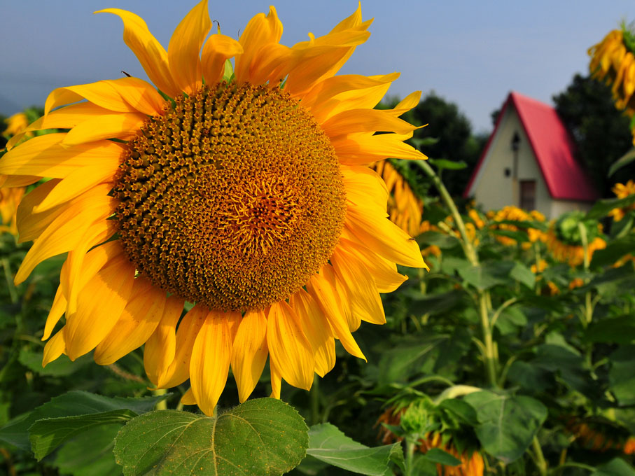 向(xiàng)日葵(拉丁文:Helianthus annuusL.),是菊科向(xiàng)日葵屬的一年生草本植物。高1~3.5米。莖直立,圓形多棱角,質硬被白色粗硬毛。廣卵形的葉片通常互生,先端銳突或漸尖,有基出3脈,邊緣具粗鋸齒,兩(liǎng)面(miàn)粗糙,被毛,有長(cháng)柄。頭狀花序,直徑10~30厘米,單生于莖頂或枝端。